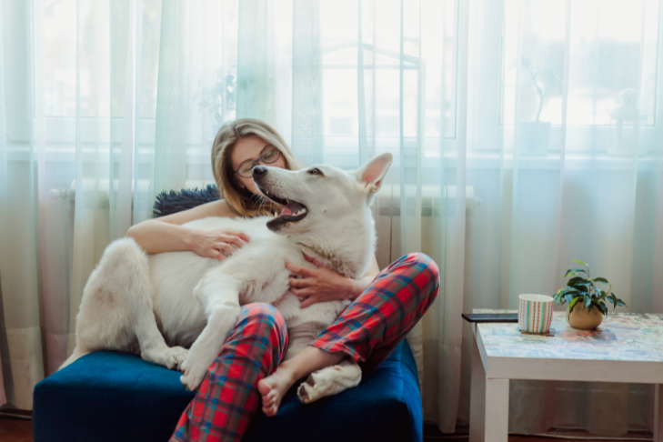 Once you’ve built your cozy little nest, grab some pillows, get under the blankets, and cuddle up with your pup. Dogs thrive on that bonding time, and you’ll both be warm, relaxed, and totally content.