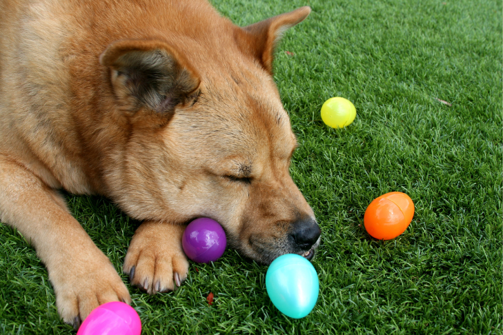 Egg hunts are the best, right? If you’re hosting an egg hunt for humans, make sure to supervise your dog to prevent them from eating plastic eggs or the contents, which can cause a choking hazard or intestinal blockage. Hosting a pet-friendly egg hunt with safe treats and toys is a great way to include your pets in the fun, just keep it supervised.