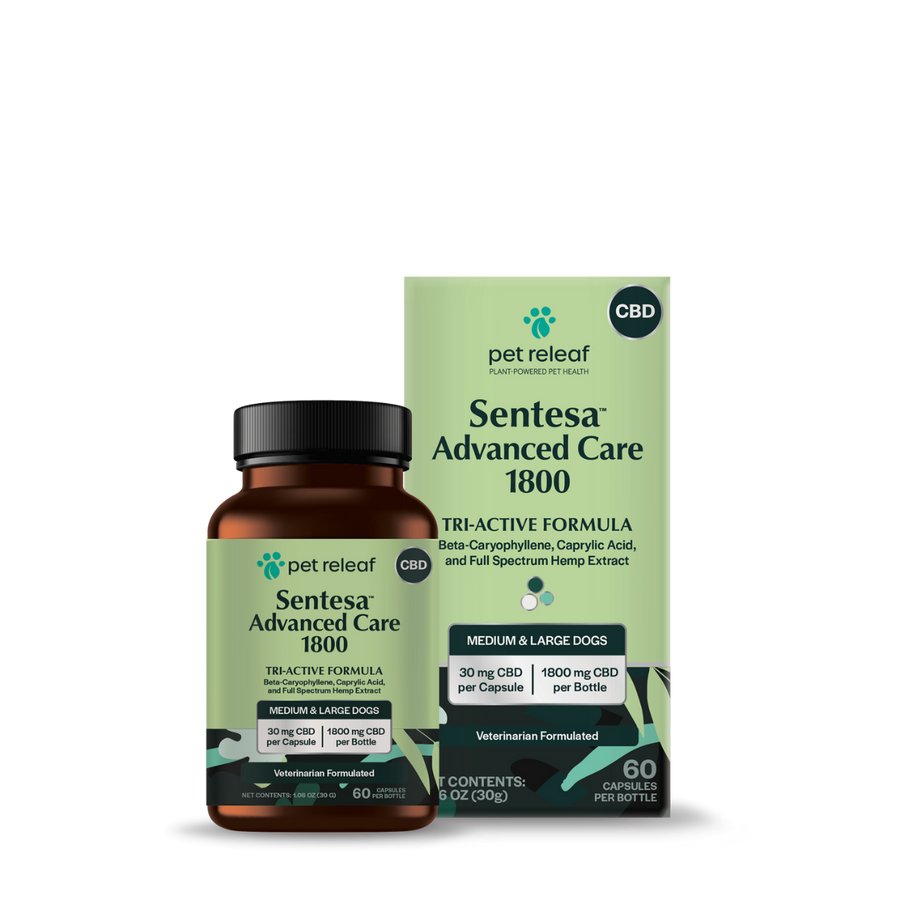 Sentesa, a patent pending formulation, was developed specifically for Pet Releaf approximately a world renowned Scientist and is a revolutionary TriActive supplement for Dogs. Sentesa’s combination of BetaCaryophyllene, Caprylic Acid, and Full Spectrum Hemp Extract creates a synergistic effect in your pet’s body to support their: