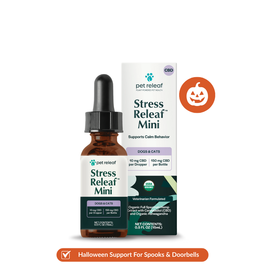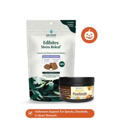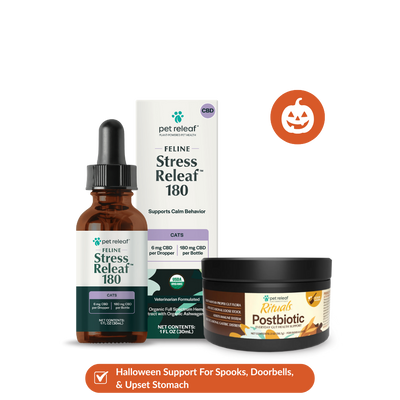 Halloween can be overwhelming for dogs and cats with doorbells, costumes, and scary sounds. Pet Releaf's Halloween Collection features calming and digestive support products to keep pets comfortable during spooky season.