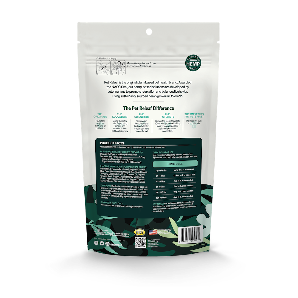 Whether it’s occasional or daily use, our savory CBD dog chews help dogs feel safe, comforted, and more in control of their surroundings.