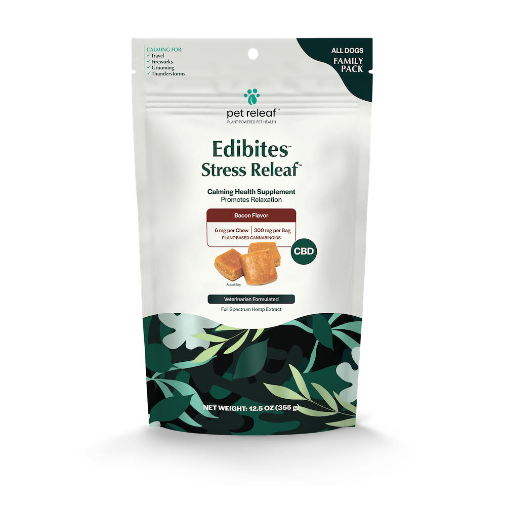 Stress Releaf Edibites offer targeted calming support for dogs experiencing occasional stress due to environmental changes, overstimulation, or daily triggers. It could be a noisy neighborhood, a sudden visitor, or the chaos of moving, whatever the case—these chews promote emotional balance without sedating your pet. Each chew contains 3mg of CBD, making them well-suited for small dogs who are often more sensitive to disruption.